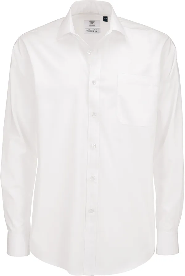 Cutaway Kragen mit elastischer Fixierung, eckige, mit 2 Knöpfen verstellbare Manschetten und zusätzlichen Knopflöchern für Manschettenknöpfe, abgerundeter Saum unten, im Kreuzstich angenähte passende Perlmuttknöpfe, letztes Knopfloch quer, 2 Ersatzknöpfe, 1 Ersatzknopf, Brusttasche links, Doppelfaltnaht seitlich und an den Ärmeln, Passe hinten mit 2 seitlichen Falten, Easy Care, 50° waschbar