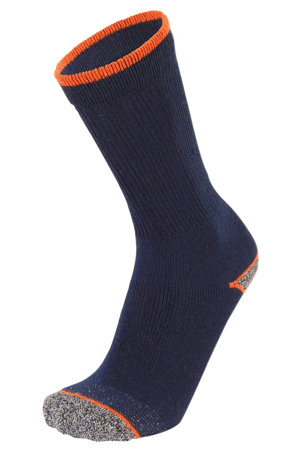 Arbeitssocken ohne Druckstellen. Doppeltes Strickbündchen für ein optimales Finish. Feines Bouclé an der Sohle. Antibakterielle SILVADUR®-Behandlung, widerstandsfähig bis zu 20 Wäschen.