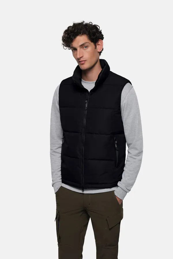 Strapazierfähiger Bodywarmer mit Absteppungen. Krageninnenseite und Armloch mit weichen, elastischen Strickbündchen. Verlängertes, abgerundetes Rückenteil. Weitenregulierbarer Saumabschluss mit Tunnelkordelzug und Stoppern. Hochwertiger 2-Wege-Frontreißverschluss mit innenliegender Windschutzpatte und Reißverschlussgarage, Innentasche und seitliche Einschubtaschen mit Reißverschluss. Alle Reißverschlüsse von YKK® in Schwarz mit reversiblen, schwarzen Reißverschlussanhängern. Strapazierfähiges Gewebe mit wärmender Wattierung aus pflegeleichter Kunstfaser. Ein verdeckter Reißverschluss im inneren Rückenteil (Revisionsöffnung) ermöglicht das einfache und individuelle Veredeln des Bodywarmers. Verfügbar auch als Damenmodell. Normale Passform: Regular Fit.