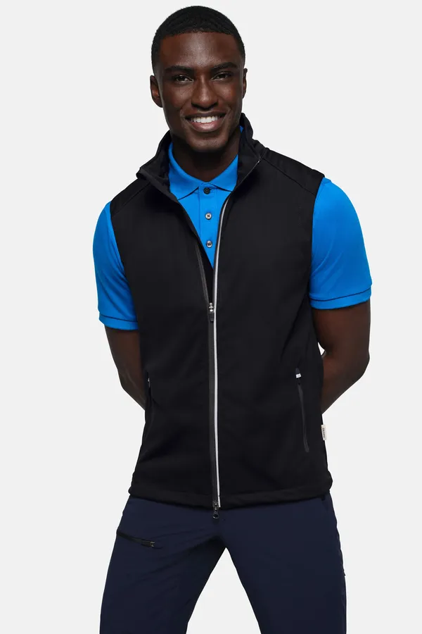 Leichte und atmungsaktive Softshellweste mit wasser- und winddichtem Softshell-Obermaterial. Reflektierende Druckgrafik am verlängerten, abgerundeten Rückenteil. Weitenverstellbarer Saumabschluss mit Tunnelkordelzug und Stoppern. Hochwertiger 2-Wege-Frontreißverschluss mit innenliegender Windschutzpatte, Reißverschlussgarage und Reflexpaspel, seitliche Reißverschlusstaschen mit Reflexapplikation. Alle Click-down-Reißverschlüsse von YKK® in Schwarz. Leichtes, dehnfähiges Softshellmaterial aus Interlock-3-Lagen-Laminat mit TRIACTIVE PRO Technologie: eine wasser- und winddichte Membrane, die gleichzeitig atmungsaktiv ist. Verfügbar auch als Damenmodell. Normale Passform: Regular Fit.