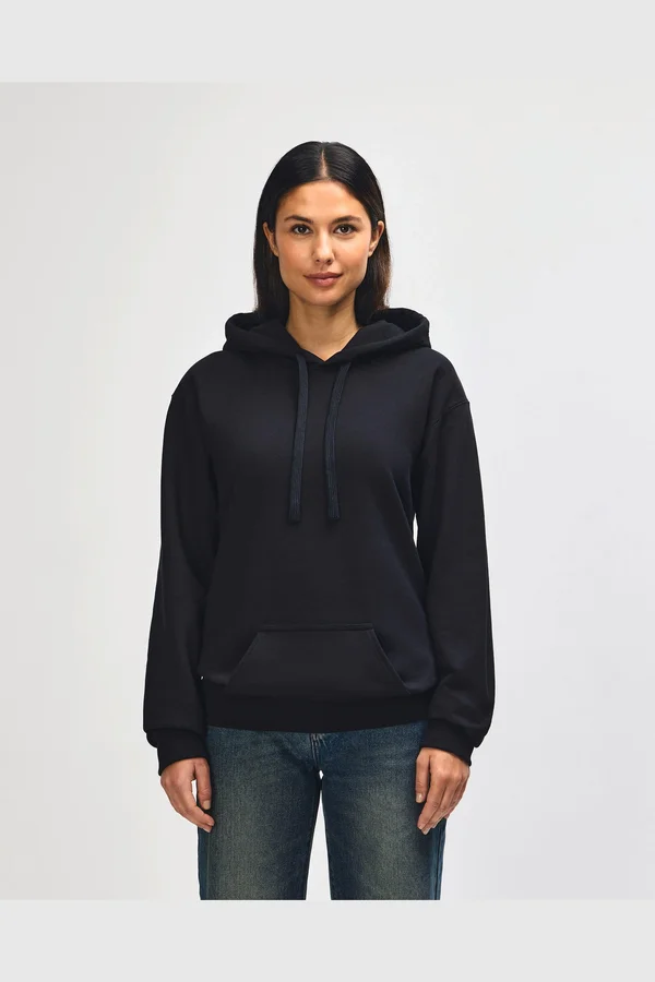 75 % U.S.-Baumwolle / 25 % Polyester. Dicker 2-fädiger Fleece-Stoff innen (360 g/m²). Die Kapuze ist mit dem gleichen Stoff gefüttert und hat eine farblich abgestimmte Flachkordel. Leicht abnehmbare Flachkordel mit diskreten Ösen für optimale Personalisierung. Kängurutasche. 1x1-Strickbündchen mit Elasthan an Ärmeln und Bund für Komfort und guten Sitz. Rumpfbereich ohne Nähte für eine bessere Passform. Abnehmbares Etikett aus recyceltem Polyester. Doppelnähte. Klassischer Schnitt.